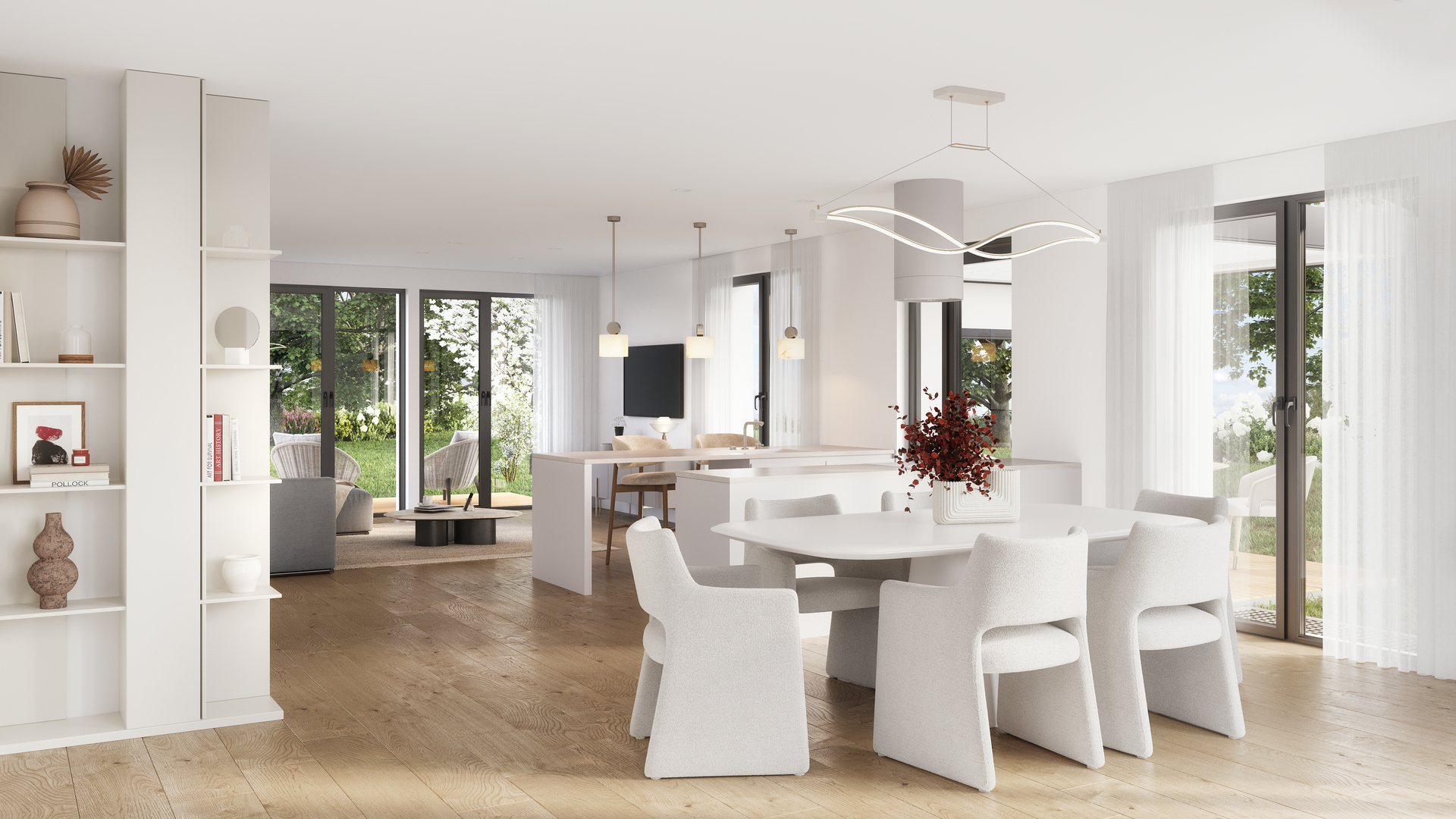 L'empreinte architecturale se veut contemporaine, épurée et conviviale. Savourez pleinement votre jardin grâce à la configuration exceptionnelle des espaces de jours ouverts sur trois façades, qui vous offrent des espaces de qualité et une luminosité remarquable.